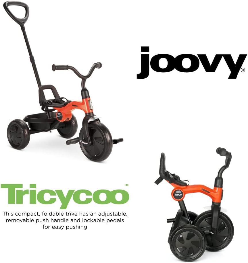 Joovy Tricycoo Fold & Go Toddler Tricycle Featuring Removable, Adjustable Push Handle, Lockable Front Pedals, Height-Adjustable Seat, 3-Point Safety Harness, and Rear Storage Box (Rorange), Large(Rorange)