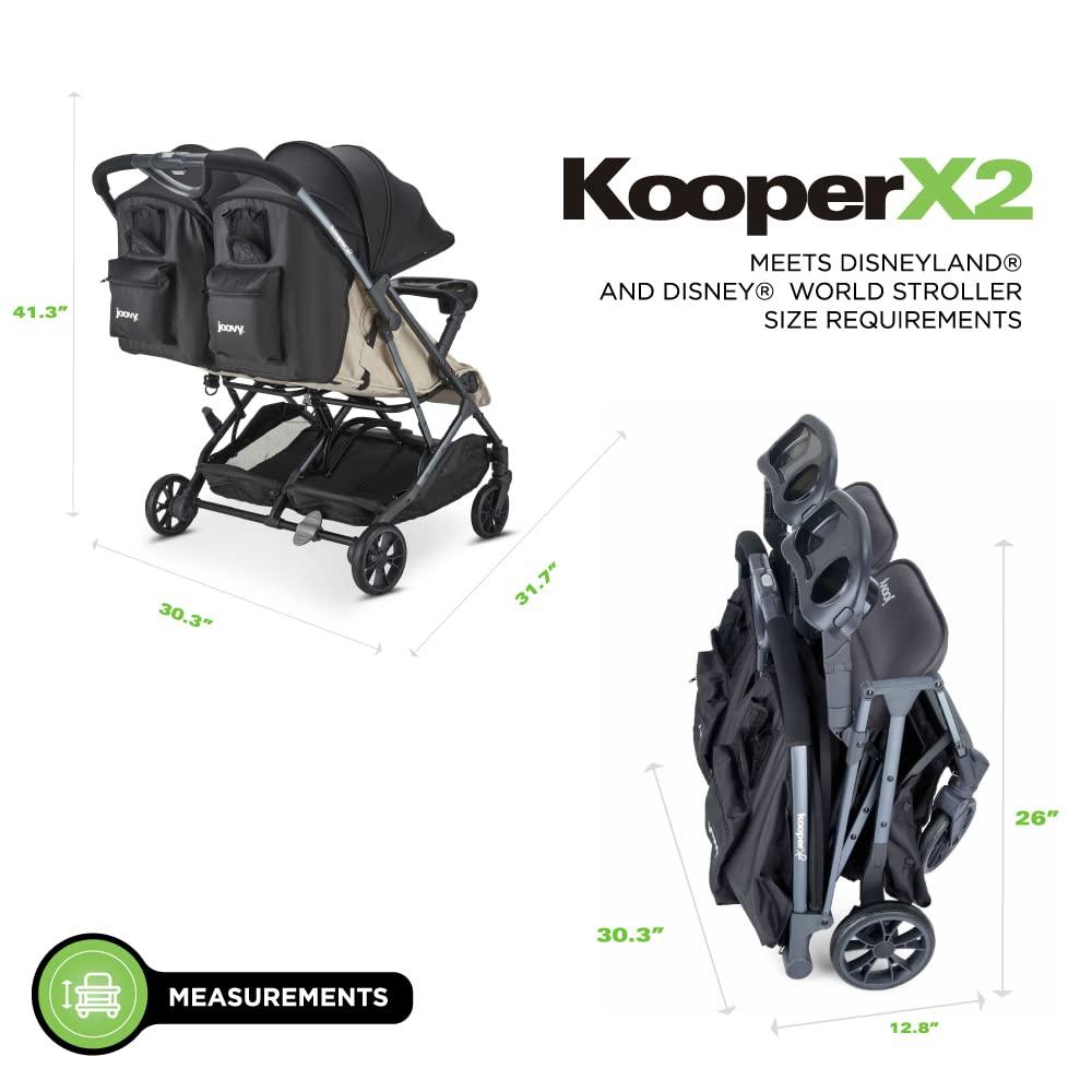Joovy Kooper X2 Double Stroller, Lightweight Travel Stroller, Compact Fold with Tray, Sand(Sand)