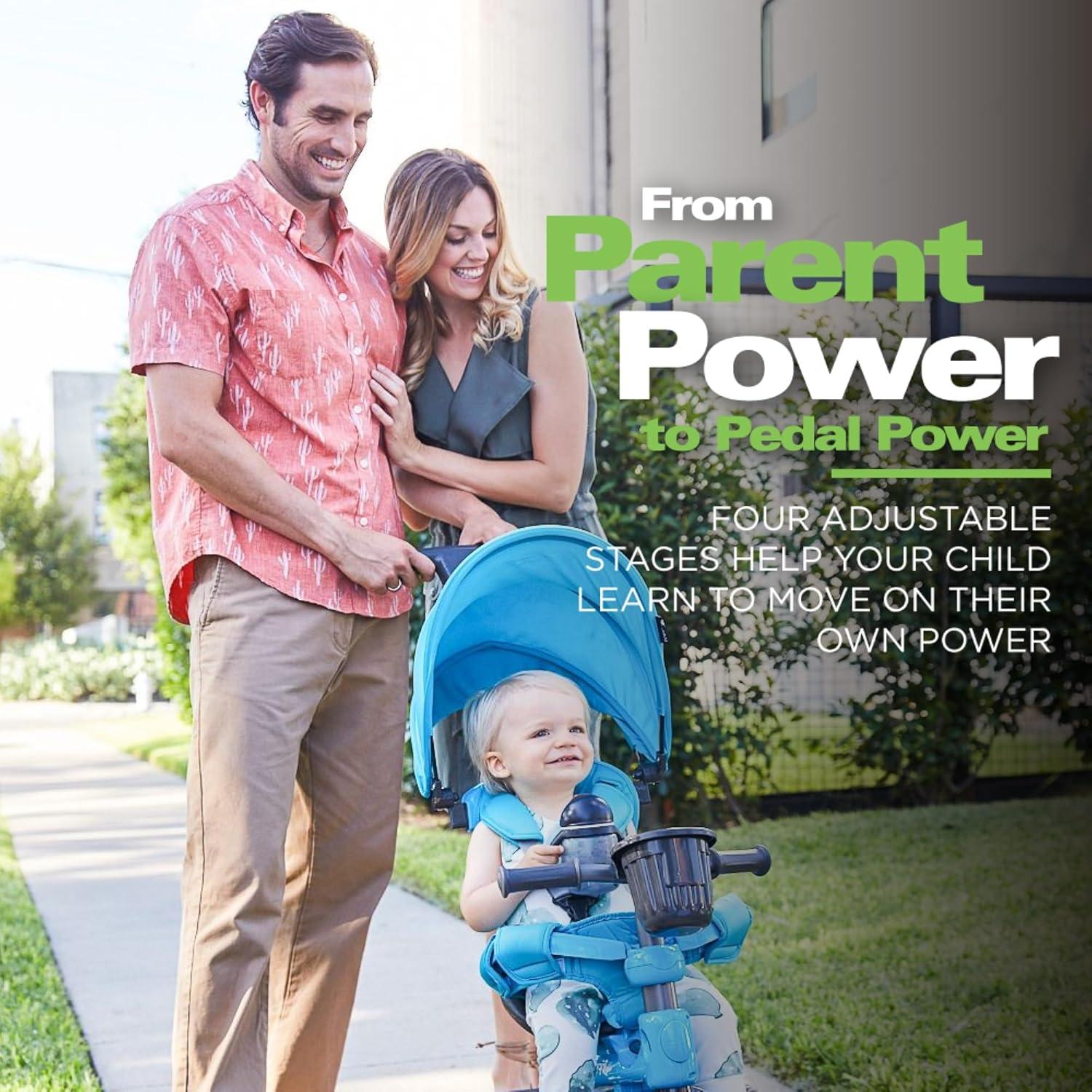 Joovy Tricycoo 4.1 Kids Tricycle with 4-Stages Featuring Extra-Wide Front Tire, Removable and Adjustable Parent Handle, Safety Harness, Machine-Washable Seat Pad, and Retractable Canopy (Pink)(Blue)