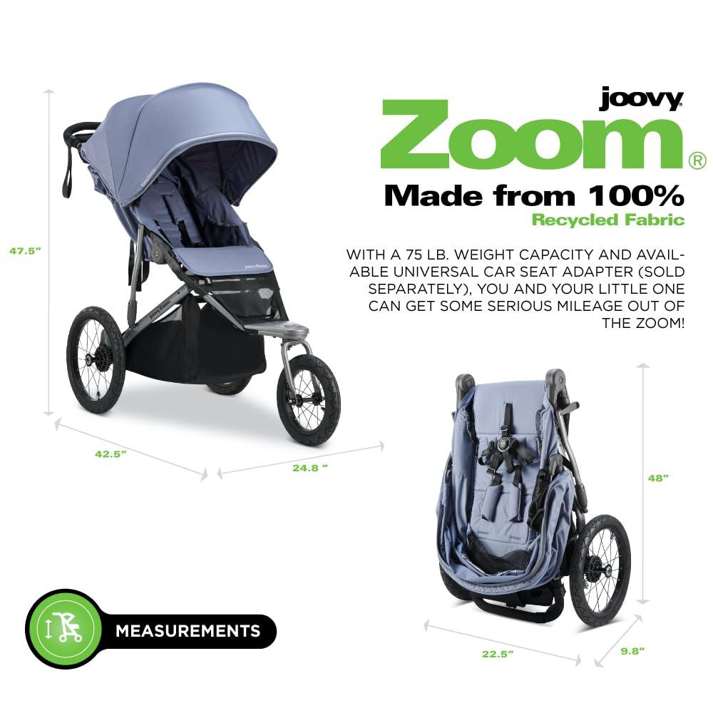 Joovy Zoom Lightweight Jogging Stroller Featuring High Child Seat, Shock-Absorbing Suspension, Extra-Large Air-Filled Tires, Parent Organizer, One-Handed Fold, and Easy One-Hand Fold, Slate